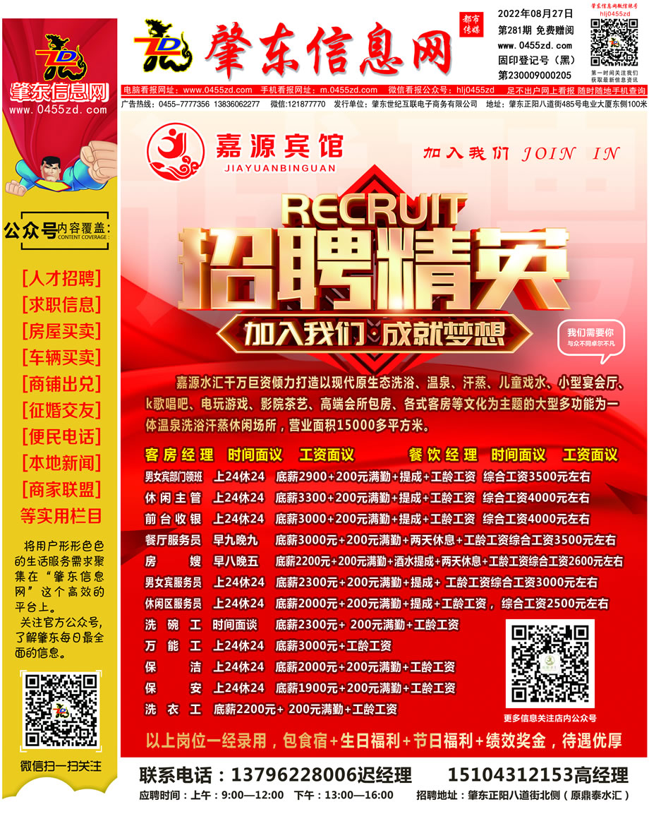 肇東信息網(wǎng)DM報(bào)紙2022年8月27日第281期