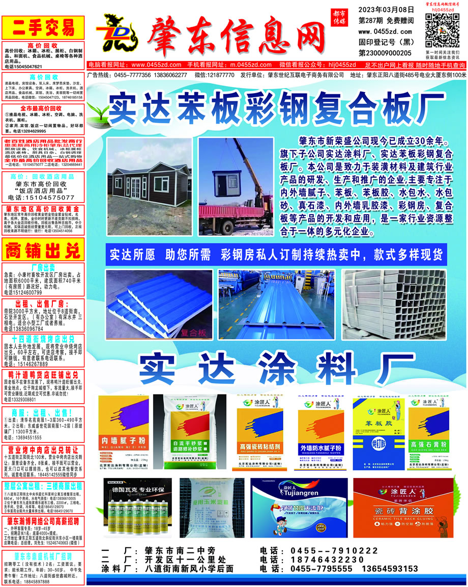 肇東信息網(wǎng)DM報(bào)紙2023年3月8日第287期