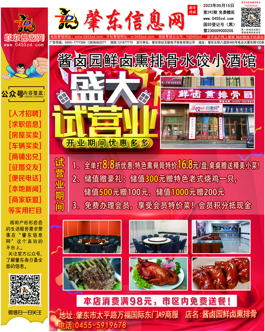 肇東信息網(wǎng)DM報(bào)紙2023年5月15日第292期