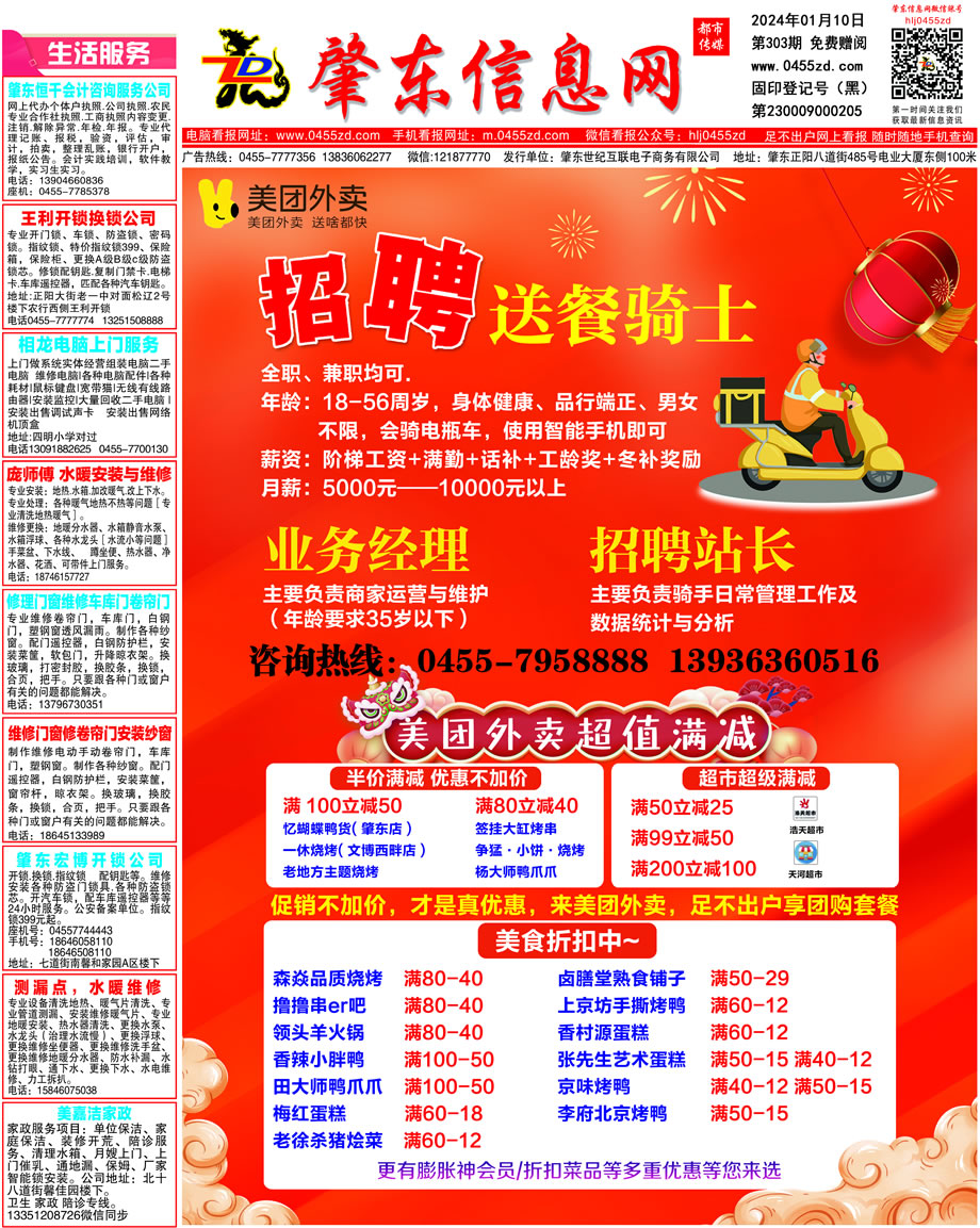 肇東信息網(wǎng)DM報紙2024年1月10日第303期