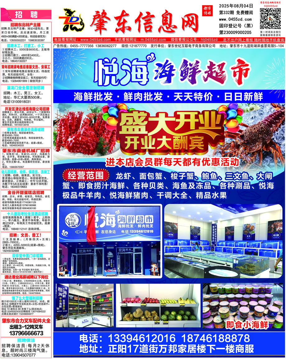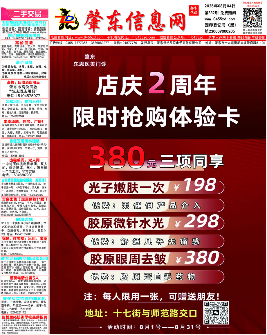 肇東信息網(wǎng)DM報(bào)紙2025年8月4日第332期