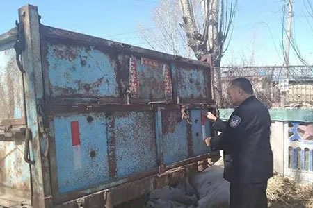 肇東躍進(jìn)派出所為轄區(qū)農(nóng)用車輛粘貼反光標(biāo)識