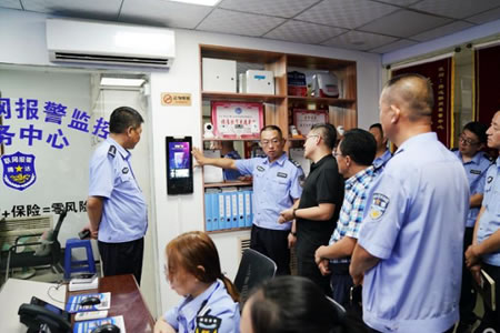 2019年8月1日肇東市公安局長張國輝同志一行參觀騰達(dá)安泰保安服務(wù)有限公司,對騰達(dá)公司110聯(lián)網(wǎng)報(bào)警平臺系統(tǒng)運(yùn)營,物聯(lián)網(wǎng)安防技術(shù)應(yīng)用,智慧社區(qū)智能門禁人臉識別系...