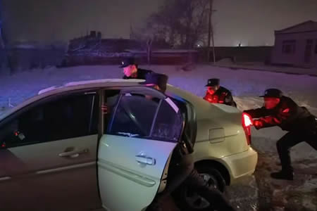 肇東公安:冰天雪地車被困 新警施救暖人心