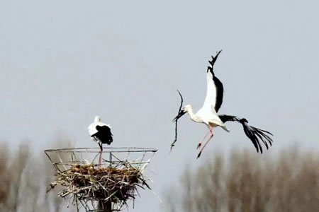 肇東市千鶴島風景區(qū)東方白鸛人工鳥巢陸續(xù)架設搭建完成!