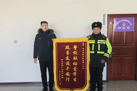 肇東公安:堅守校園安全崗 學(xué)校致謝送錦旗