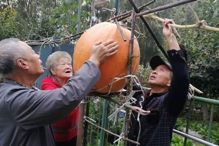 日前,黑龍江省綏化市肇東市80歲高齡的趙瑞琴老人,在自家的小菜園里收獲了一個50斤重的大南瓜。 收獲時,左鄰右舍都來幫老人摘瓜。兩個中年人費好大勁兒,才將這個“...