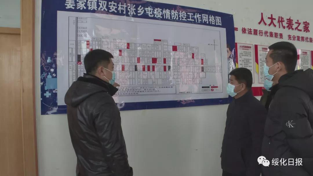 在姜家鎮(zhèn)政府辦公室墻上懸掛的一張姜家鎮(zhèn)雙安村張鄉(xiāng)屯疫情防控工作網(wǎng)格圖格外顯眼。鎮(zhèn)黨委書(shū)記生振明指著網(wǎng)格圖,向鎮(zhèn)村干部了解居家隔離人員具體情況。