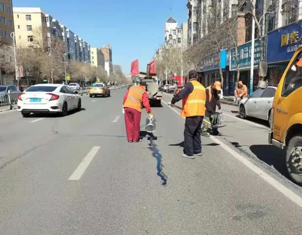 養(yǎng)護(hù)人員用吹風(fēng)機(jī)將裂縫中灰塵和雜物吹凈,然后將熱熔后的密封膠注入裂縫中,冷卻后恢復(fù)交通。專業(yè)技術(shù)人員跟班作業(yè),全程指導(dǎo)施工,狠抓清縫、灌注等關(guān)鍵環(huán)節(jié),做到清縫徹底、灌縫飽滿、路面整潔、線條美觀,把“精細(xì)養(yǎng)護(hù)”理念貫穿工作始終,確保路面養(yǎng)護(hù)質(zhì)量。