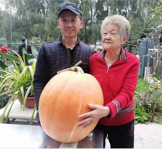 日前,黑龍江省綏化市肇東市80歲高齡的趙瑞琴老人,在自家的小菜園里收獲了一個(gè)50斤重的大南瓜。