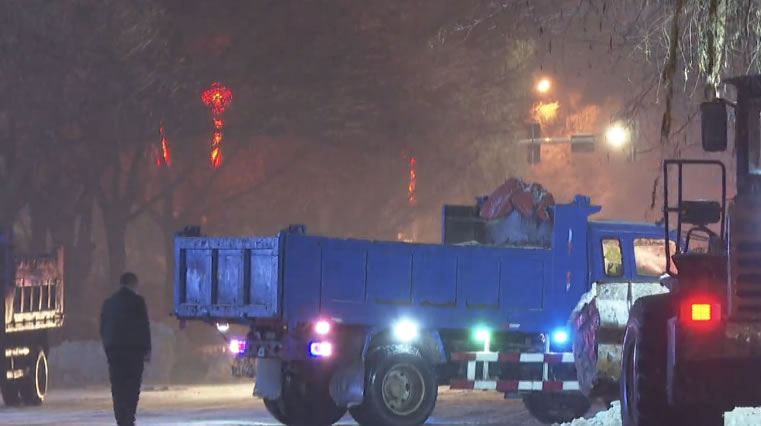 晚上八點,面對降雪量的增加,市城市管理綜合執(zhí)法局組織環(huán)衛(wèi)工人們按照“雪中清雪、邊清邊運”的原則,“以機械為主,人工為輔,機械和人工清掃有效結(jié)合”的循環(huán)清雪作業(yè)模式,對我市所有街道開展清除冰雪工作,經(jīng)過連續(xù)作業(yè),主干街道等很快就路見本色,路邊的雪堆也清運完成。隨后又對次干道、支路、背街小巷等路段進行清雪作業(yè),全力保障早高峰市民出行安全。
