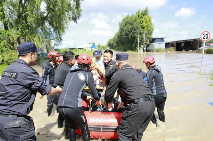 搶險救援中,巡特警大隊充分發(fā)揚(yáng)骨干先鋒作用,快速反應(yīng)、迅速集結(jié),多次冒險通過涉水路段,第一時間趕赴搶險救援現(xiàn)場,解救被困群眾,疏導(dǎo)滯留車輛,轉(zhuǎn)移群眾財產(chǎn)。交警大隊密切關(guān)注天氣變化,加強(qiáng)危險地段警戒,及時設(shè)置遠(yuǎn)端管控點,對車輛和人員進(jìn)行分流處置,向社會公布道路交通狀況和行車路線,確保救援車輛順暢通行。派出所全面疏散、轉(zhuǎn)移群眾,及時排查險情,清除安全隱患,加強(qiáng)受災(zāi)區(qū)域巡邏,切實維護(hù)人民群眾生命財產(chǎn)安全。