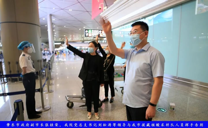 凌晨集結(jié),逆行出戰(zhàn)。2022年8月19日凌晨3:30分左右,當(dāng)大家還在酣睡夢(mèng)鄉(xiāng)時(shí),我院援藏隊(duì)員阮思錦、賀妍玢、韓冰、馬越已經(jīng)帶著家人、朋友、同事的叮嚀與不舍,帶著醫(yī)務(wù)工作者的擔(dān)當(dāng)與使命,在市政府集結(jié)后,便前往哈爾濱太平國(guó)際機(jī)場(chǎng)乘坐專機(jī)奔赴西藏,義無(wú)反顧地踏上了抗疫征程。市政府副市長(zhǎng)張桂榮,衛(wèi)健局黨組書記王琦,衛(wèi)健局副局長(zhǎng)初哲,衛(wèi)健局黨組成員趙芳,我院黨總支書記劉松濤,第一醫(yī)院黨總支書記呂哲及職工代表為我市援藏核酸采樣隊(duì)送行。