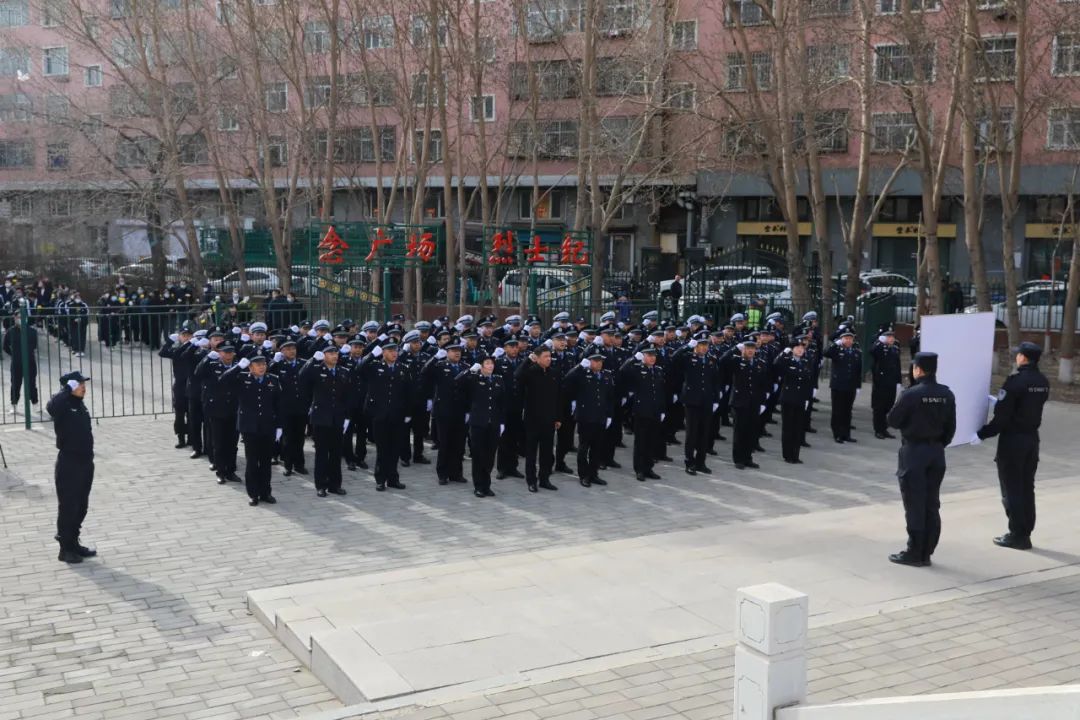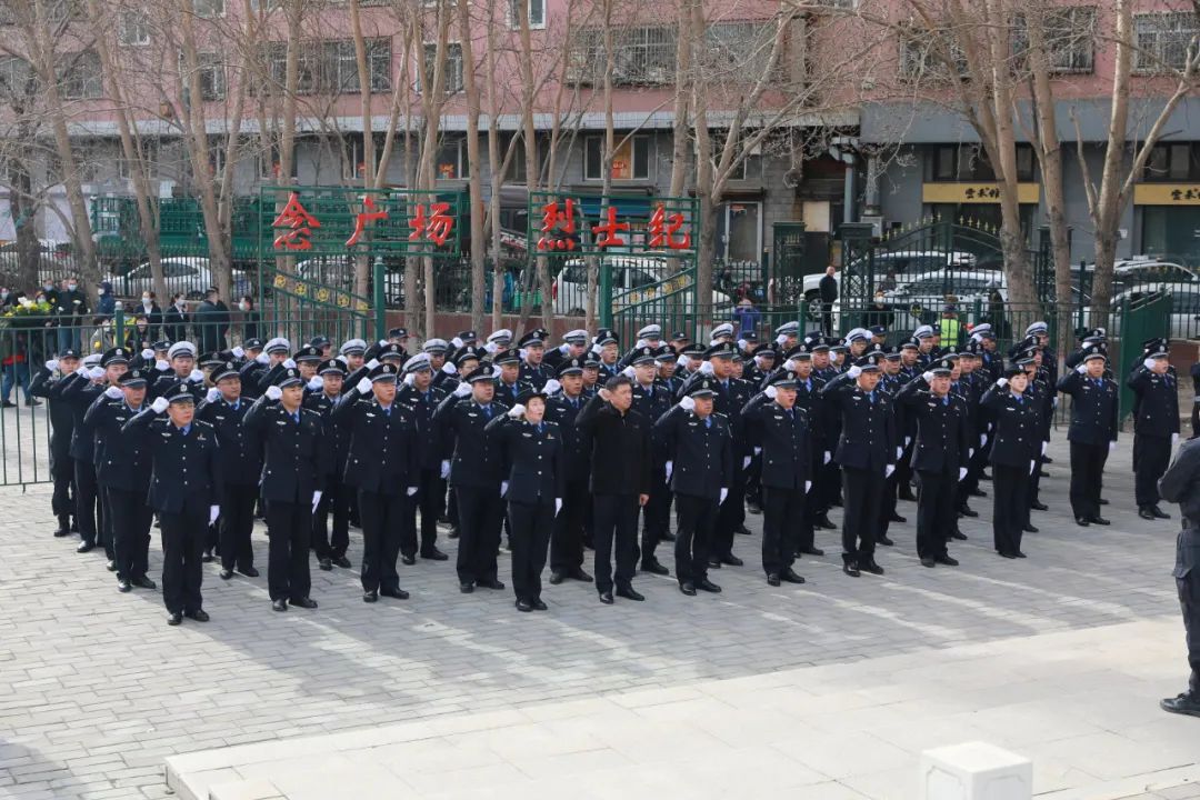 局班子成員帶領(lǐng)全體民輔警面向紀(jì)念碑,重溫入警誓詞。