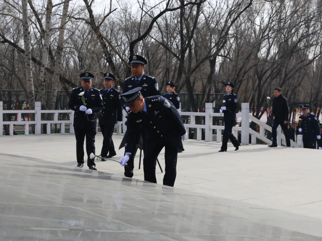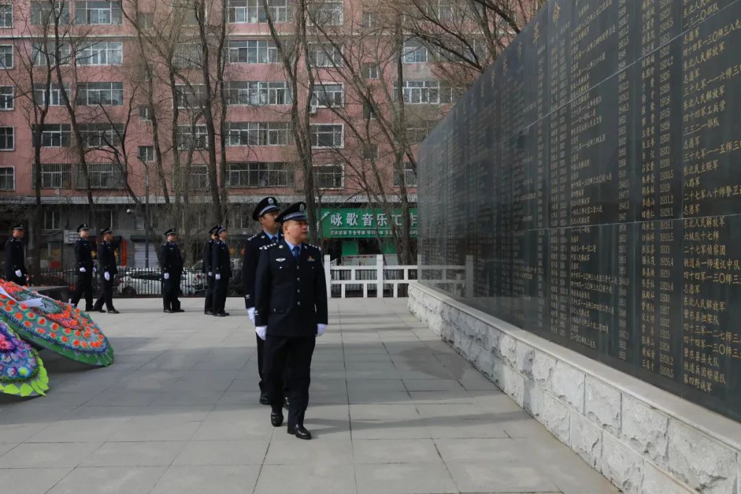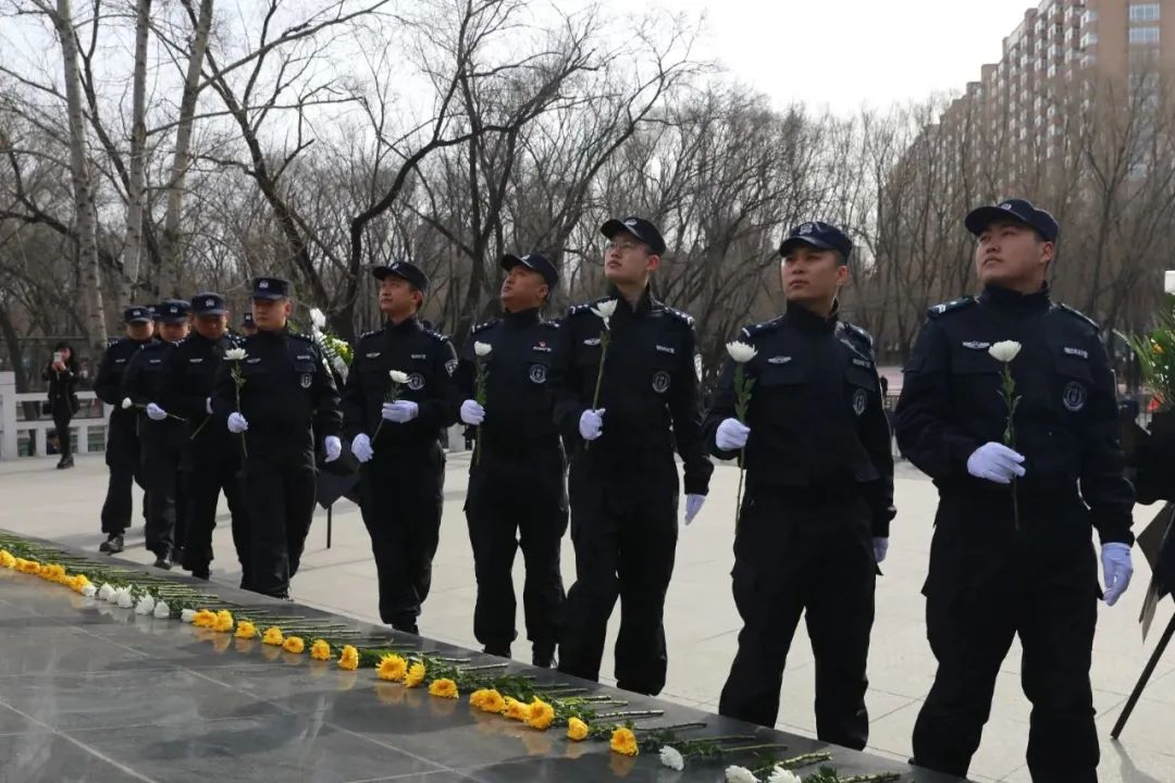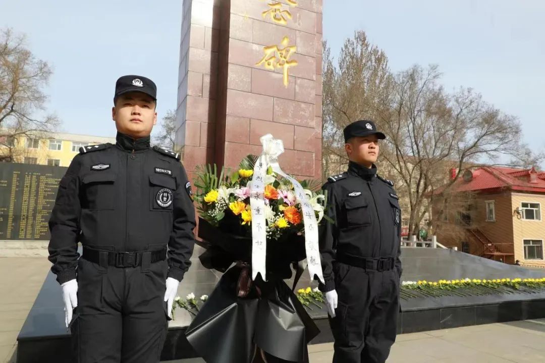 參加祭奠活動的全體民輔警懷著濃濃的哀思和崇高的敬意,整齊列隊,來到英雄紀(jì)念碑前向英烈紀(jì)念碑敬獻(xiàn)了花圈和鮮花,全體民輔警肅立默哀,表達(dá)對英雄們無限的崇敬和深切的緬懷之情。