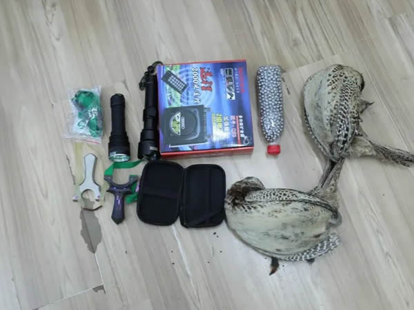 經(jīng)訊問,武某成、呂某、趙某勇對(duì)使用彈弓在鐵東區(qū)野草地中打野雞一事供認(rèn)不諱。三人所捕獲的野雞(學(xué)名環(huán)頸雉)為國家二級(jí)保護(hù)動(dòng)物。民警現(xiàn)場(chǎng)繳獲彈弓、鋼珠、強(qiáng)光手電、野雞叫聲設(shè)備等作案工具。據(jù)三人所述,當(dāng)天閑來無事酒后由于想滿足口腹之欲便準(zhǔn)備打點(diǎn)野味來嘗嘗鮮。開車來到鐵東區(qū)草甸子,利用專業(yè)照明設(shè)備看到了野雞后便使用彈弓瞄準(zhǔn)、射殺、撿拾,但沒想到尚未嘗到美味,卻要咽下觸犯刑律的惡果。