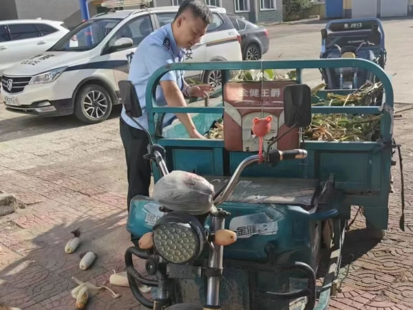 9月14日下午14時許,海城派出所民警在巡邏到長興村1組一片玉米地時,發(fā)現(xiàn)一臺電動三輪車在玉米地邊?浚L興村村民劉某正在往三輪車上裝玉米穗,巡邏民警發(fā)覺事情可疑立即上前詢問,經(jīng)查,劉某交代自己騎三輪車經(jīng)過被盜玉米地時,看到地里的玉米長得很好,想著自己家里的牛正需要飼料吃,于是徒增盜心,就掰了197穗玉米棒裝在車上,準(zhǔn)備帶回家給老牛吃,沒想到還沒裝完就被派出所抓獲。民警看到玉米地里一片狼藉,玉米稈東倒西歪,上面的玉米棒被劉某掰走。玉米是群眾辛勤勞作而得到的勞動果實(shí),收獲在望卻被他人偷走,群眾的心情可想而知。