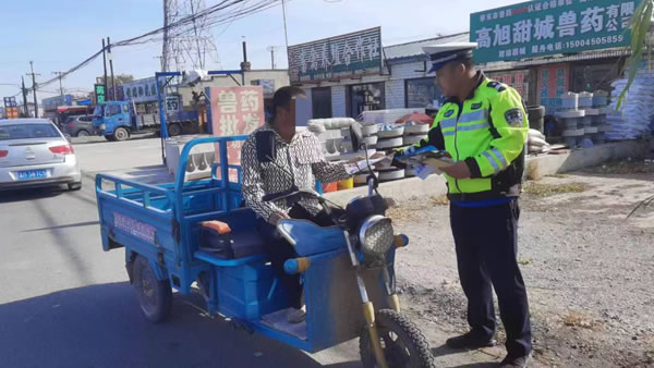 當(dāng)前正值秋收旺季,為持續(xù)推進(jìn)“保秋收 壓事故”專項(xiàng)整治行動(dòng),做好轄區(qū)農(nóng)村道路交通安全管理工作,全力遏制和減少秋收農(nóng)忙季節(jié)道路交通事故。近日,肇東公安交警聯(lián)合市農(nóng)業(yè)農(nóng)村局,積極組織人力深入村鎮(zhèn)開(kāi)展交通安全宣傳活動(dòng),為秋收時(shí)節(jié)農(nóng)村地區(qū)筑牢" />