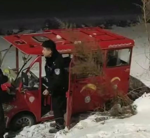 1月27日傍晚,肇東鎮(zhèn)派出所民輔警在轄區(qū)開(kāi)展日常工作時(shí),發(fā)現(xiàn)一輛電動(dòng)三輪車(chē)陷在路邊雪坑,一名聾" />