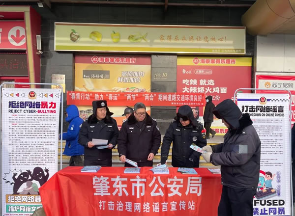 為深入推進(jìn)打擊整治網(wǎng)絡(luò)謠言專項(xiàng)行動,營造良好的社會輿論氛圍,提升廣大群眾對網(wǎng)絡(luò)謠言的辨別能力。1月30日,肇東市公安局網(wǎng)安大隊(duì)聯(lián)合公共關(guān)系大隊(duì)采取多種形式的網(wǎng)絡(luò)謠言打擊整治專題宣傳活動。