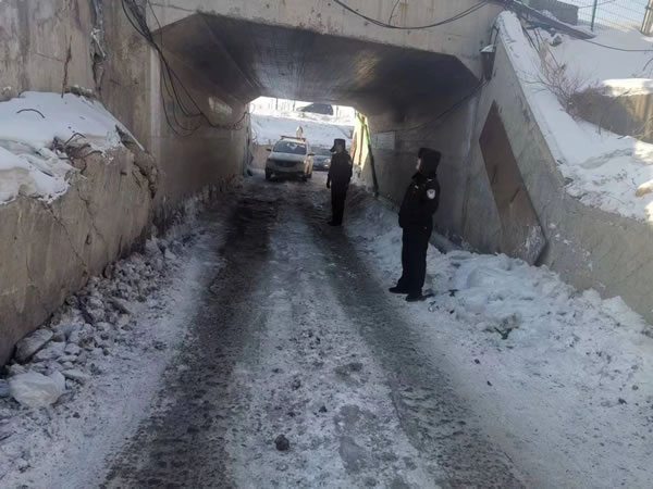 汽車冬季涵洞打滑 肇東公安緊急救援