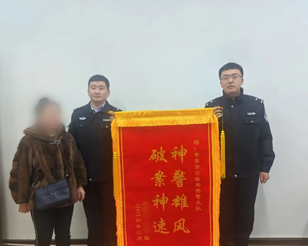 在“春雷行動(dòng)”中,肇東市公安局刑警大隊(duì)緊盯重案、要案,采取快偵、速破原則,成功偵破一起持刀搶劫案手機(jī)案,贏得了轄區(qū)居民的一致好評(píng)。2月18日,肇東市居民劉女士,將一面印有“神警雄風(fēng) 破案神速”的錦旗,送到肇東市公安局刑警大隊(duì)民警手中,以表感激之情。