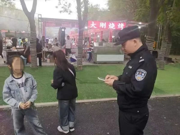 此時,正在美食節(jié)執(zhí)勤的民警們發(fā)現(xiàn)了這一情況,他們立刻分成兩組,一組將小女孩帶到身邊,安撫她倆的情緒;一組疏散圍觀的群眾,恢復(fù)會場秩序。民警們變成了小女孩的“臨時大哥哥”,在他們的不斷努力下,兩個小女孩終于破涕為笑,說出了母親的名字和電話號碼。民警立刻撥通了孩子母親電話,五分鐘后,小女孩的母親焦急地前來認(rèn)領(lǐng)。經(jīng)過身份信息核對無誤,執(zhí)勤民警將小女孩交給她母親。見到兩個小女孩安然無恙,家長非常激動地拉著執(zhí)勤民警的手連聲道謝。