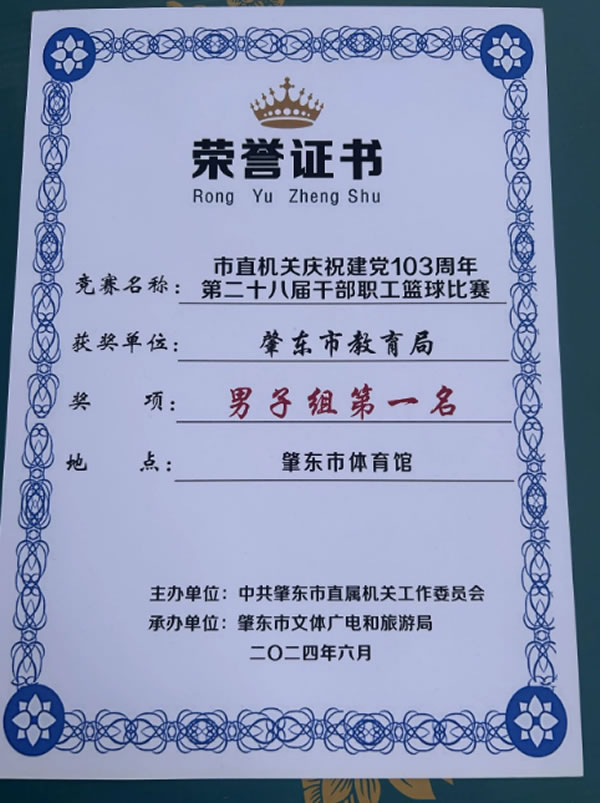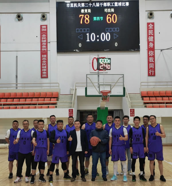 在6月15日-22日我市市直機(jī)關(guān)工委舉辦的“慶祝中國共產(chǎn)黨成立103周年第二十八屆干部職工籃球比賽”中,教育局代表隊一路過關(guān)斬將,獲得市直男子組第一名的佳績。