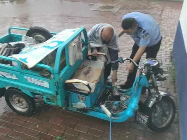 了解情況后,民警冒著大雨幫助遲大哥把沒電的三輪車推到派出所院內(nèi)進(jìn)行充電,并將遲大哥邀請(qǐng)到派出所屋內(nèi),順便避一避雨,為其購(gòu)買了蛋糕火腿腸等食品,并為其提供了熱水,緩解了遲大哥瑟瑟發(fā)抖的身體,遲大哥激動(dòng)地說“今天要是沒有你們我肯定回不了家了,能真心幫助我的好心人也只有派出所了……”遲大哥不斷感謝派出所民輔警。