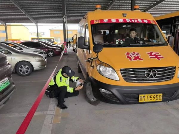 查驗(yàn)過(guò)程中,民警對(duì)校車標(biāo)志、滅火器、安全帶、安全錘、緊急逃生門、車輛燈光、停車指示牌、車輛年檢及保險(xiǎn)、輪胎的安全性能及校車技術(shù)狀況、安全駕駛情況以及校車安全管理措施落實(shí)情況等方面進(jìn)行安全大檢查。同時(shí)認(rèn)真核對(duì)了校車駕駛?cè)说鸟{駛資質(zhì),聽(tīng)取了校車負(fù)責(zé)人對(duì)校車出行方式、安全隱患排查整治、企業(yè)主體責(zé)任落實(shí)情況介紹,并要求校車駕駛?cè)艘杂X(jué)遵守交通法規(guī),安全行駛、平安出行。