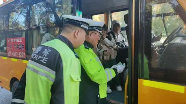 行動(dòng)中,民警逐車核查校車手續(xù)是否齊全,車輛技術(shù)狀態(tài)是否符合安全運(yùn)行條件,以及車輛維護(hù)保養(yǎng)等情況。重點(diǎn)檢查了車輛座位數(shù)、核載人數(shù)、駕駛?cè)速Y質(zhì)、校車外觀標(biāo)識(shí)、安全錘、安全帶、滅火器、安全門等,并叮囑駕駛?cè)艘?jǐn)慎駕駛,時(shí)刻把安全放在第一位。