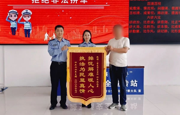 5月9日周五下午,貨車車主王某到肇東市車管所12123幫辦臺求助辦理貨運(yùn)通行證業(yè)務(wù),貨運(yùn)通行證業(yè)務(wù)需要車主本人在手機(jī)“交管12123”和用戶電腦客戶端上同時綁定業(yè)務(wù),操作程序復(fù)雜。經(jīng)過工作人員了解后,發(fā)現(xiàn)王某在“交管12123”操作失誤,致使當(dāng)天沒有辦理成功。由于王某急需辦理貨運(yùn)通行證,否則車輛無法運(yùn)營。韓所長得知王某的情況后,利用第二天放假休息時間,與支隊相關(guān)工作人員協(xié)調(diào)溝通后,安排輔警蔡寶澍聯(lián)系王某,幫助其重新操作辦理成功。為了表達(dá)感激之情,車主王某于5月12日特將一面寫著“排憂解難暖人心、執(zhí)法為民顯真情”的錦旗送到車管所工作人員手中。