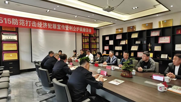 為了進(jìn)一步推進(jìn)宣傳活動(dòng),副局長(zhǎng)武立志帶領(lǐng)經(jīng)偵大隊(duì)民輔警與市工商聯(lián)召開“5.15”防范打擊經(jīng)濟(jì)犯罪宣傳利企護(hù)商座談會(huì),會(huì)上武立志同經(jīng)偵民警圍繞如何保護(hù)企業(yè)權(quán)益、護(hù)航企業(yè)發(fā)展,堅(jiān)持源頭防范侵害企業(yè)的經(jīng)濟(jì)犯罪,動(dòng)態(tài)聯(lián)合企業(yè)進(jìn)行預(yù)警,同時(shí)經(jīng)偵民警對(duì)企業(yè)提出的關(guān)于經(jīng)濟(jì)犯罪的疑問一一進(jìn)行解答,并為企業(yè)講解了非法集資、組織、領(lǐng)導(dǎo)傳銷、職位侵占、合同詐騙等經(jīng)濟(jì)犯罪的典型案例,對(duì)作案手法、作案特點(diǎn)進(jìn)行了詳細(xì)的講解,提高企業(yè)對(duì)經(jīng)濟(jì)犯罪的防范能力,從根本上遏制經(jīng)濟(jì)犯罪的發(fā)生。
