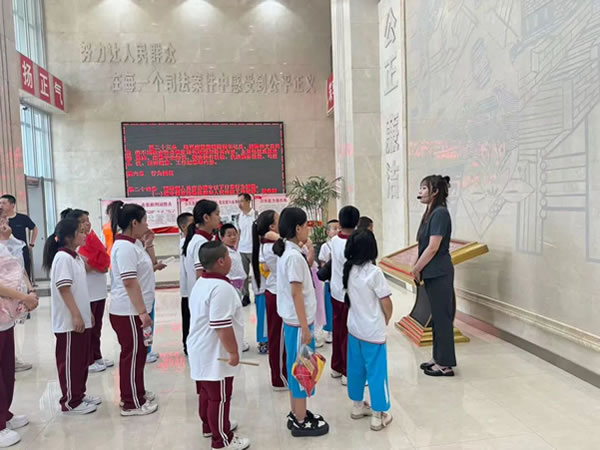 活動當(dāng)日,陽光明媚,在“愛心媽媽”的陪伴下,肇東市新立小學(xué)的學(xué)生們滿懷好奇與期待踏入法院的大門。在解說員的引導(dǎo)下,大家有序參觀了訴訟服務(wù)中心、科技法庭、羈押室等場所,直觀感受到司法便民的舉措。走進(jìn)莊嚴(yán)的審判法庭,看到高懸的國徽、威嚴(yán)的法臺,同學(xué)們深刻體會到法律的神圣與莊重。觸摸法槌、親身體驗(yàn)法官、檢察官、辯護(hù)人等角色,讓大家興奮不已,也對司法工作有了更直觀的認(rèn)識。在參觀過程中,“愛心媽媽”們始終陪伴在同學(xué)們身邊,細(xì)心地提醒大家注意安全,輕聲解答同學(xué)們的疑問,眼神中滿是關(guān)切與愛護(hù)。