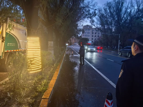 6月9日晚8時許,巡特警大隊民警在小餅節(jié)例行開展巡邏任務(wù),在巡邏至小餅節(jié)東門時,隱約聽到有電弧聲音,便立即上前查看,發(fā)現(xiàn)疑似漏電。巡特警大隊的民警了解情況后,為避免人民群眾受到傷害,立即與主管單位采取了聯(lián)系。主管單位到達現(xiàn)場后,巡特警大隊民警與其齊心協(xié)力對疑似漏電處進行了搶修,圍觀群眾皆對民警的及時舉措表達了贊揚。
