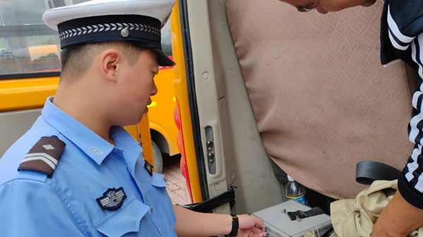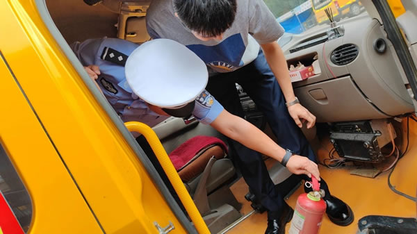 活動中,客運中隊民警首先對校車的輪胎、反光標(biāo)識、安全錘、逃生門、滅火器、安全帶、停車指示牌等安全設(shè)備進行了認(rèn)真檢查,其次對校車車輛手續(xù)是否齊全、車輛車況是否良好、駕駛?cè)藴?zhǔn)駕車型是否相符、以及行車日志等信息進行了細(xì)致的排查。民警對不符合標(biāo)準(zhǔn)的地方進行了明確講解標(biāo)注,并下發(fā)《校車隱患整改通知書》責(zé)令校車負(fù)責(zé)人限期整改,確保每一輛校車能夠安全平穩(wěn)運行。