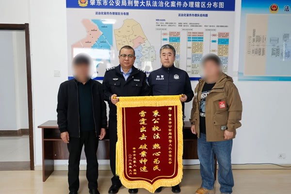 10月27日,肇東居民柴女士家人將一面印有“秉公執(zhí)法 熱心為民 雷霆出擊 破案神速”的錦旗送到肇東市公安局刑偵大隊(duì)民警手中,以表感激之情。