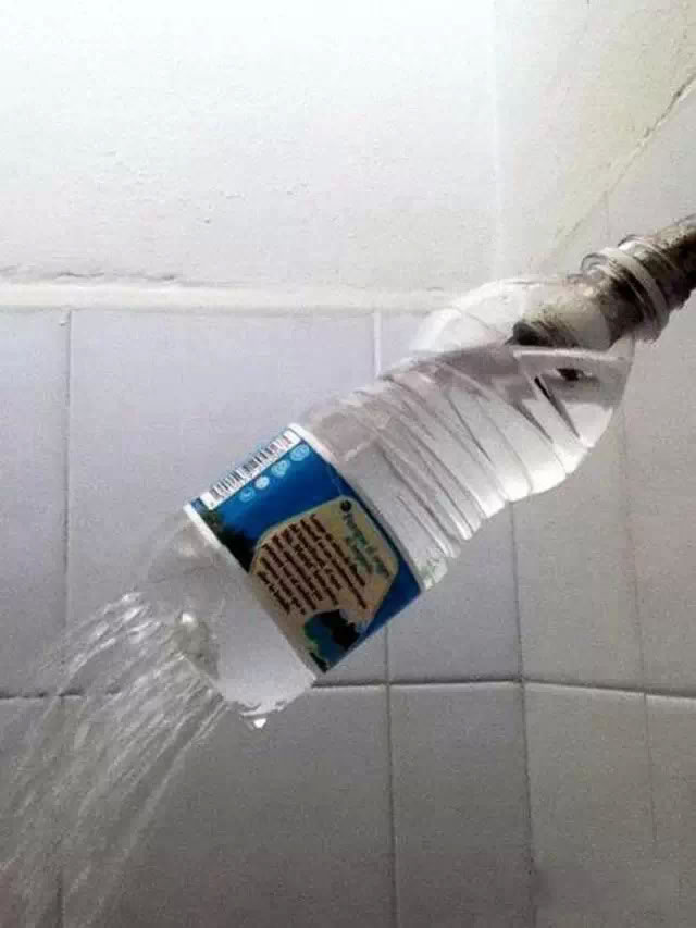 20.蓮蓬頭有的眼堵了怎么辦,據(jù)說用塑料袋里倒點(diǎn)醋像這樣扎在噴頭上泡一夜就能通了。
