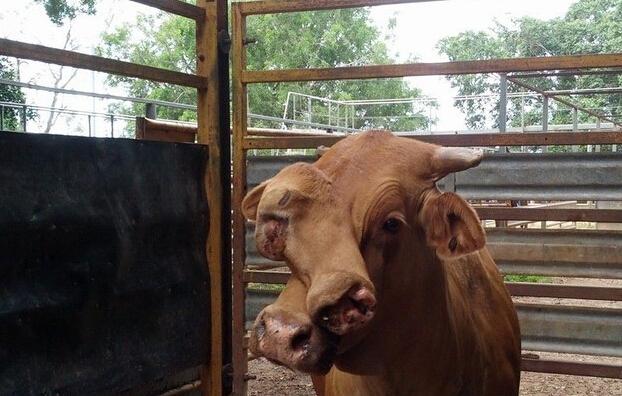 【雙面牛驚現(xiàn)澳大利亞】澳大利亞媒體11日報道,澳昆士蘭北部地區(qū)一家出售了一條“雙臉!。根據(jù)社交媒體上的Po圖,這頭牛的第二張臉上有一只眼睛,倆鼻孔和一只牙齒。