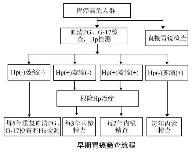 胃癌高危人群應(yīng)該按照下面這個(gè)中國抗癌協(xié)會(huì)推薦的流程進(jìn)行胃癌篩查: