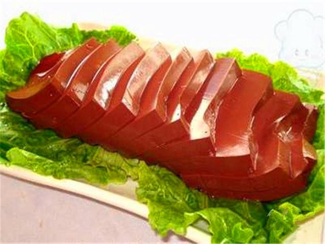 豬血:味甘、苦,性溫,有解毒清腸、補血美容的功效。豬血中的血漿蛋白被人體內的胃酸分解后,產(chǎn)生一種解毒、清腸分解物,能夠與侵入人體內的粉塵、有害金屬微粒發(fā)生化合反應,易于毒素排出體外。,豬血富含鐵,對貧血而面色蒼白者有改善作用,是排毒養(yǎng)顏的理想食物。