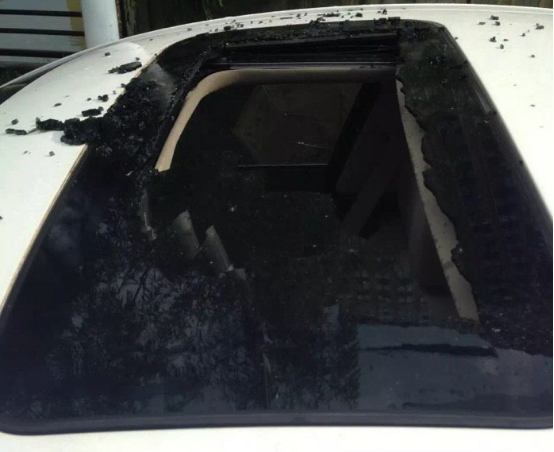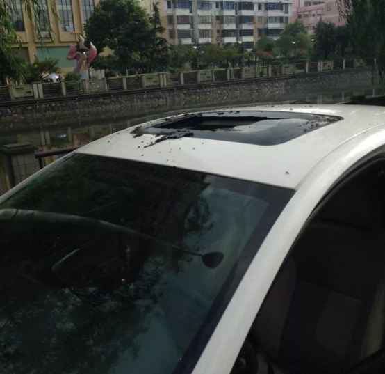 在一個雷電交加的日子里,無錫有一位車主像往常一樣,去小區(qū)附近停車的地方取車。走到愛車旁邊的那一刻,車主整個人驚呆了!天窗的地方竟被劈了一個大窟窿。