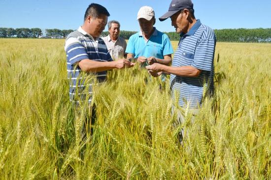 近日,肇東市黎明鎮(zhèn)長(zhǎng)富村千畝有機(jī)小麥金黃色的麥浪隨風(fēng)飄擺,再過十余天就將成熟收割。據(jù)了解,長(zhǎng)富村依托谷物合作社、農(nóng)機(jī)合作社以及糧食深加工企業(yè)帶動(dòng)村民共同致富,實(shí)現(xiàn)了農(nóng)民與企業(yè)合作“雙贏”。圖為村干部與農(nóng)民一起查看小麥長(zhǎng)勢(shì)。