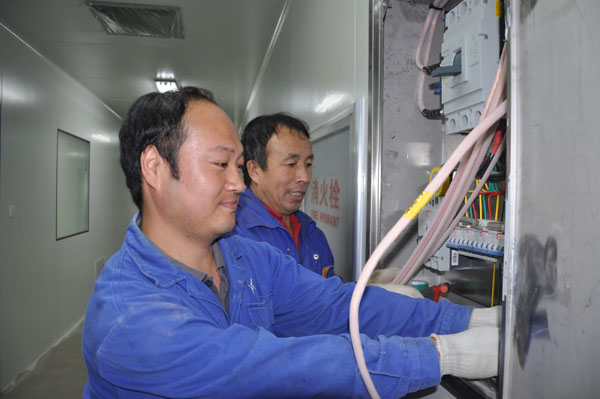 圖為工人正在綠色食品產(chǎn)業(yè)大園區(qū)進行電力配電箱線路安裝;粲老 特約記者 車彥旭 攝