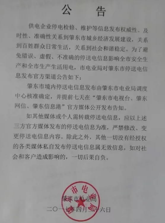 供電企業(yè)停電檢修、維護(hù)等信息發(fā)布權(quán)威性、及時性、準(zhǔn)確性關(guān)系到肇東市城鄉(xiāng)經(jīng)濟(jì)發(fā)展建設(shè),關(guān)系到百姓群眾日常生活,關(guān)系到社會和諧穩(wěn)定。為了避免錯誤、虛假、不準(zhǔn)確的停送電信息影響全市安全生產(chǎn)和居民生活用電,市電業(yè)局對肇東市停送電信息發(fā)布官方渠道公告如下:
