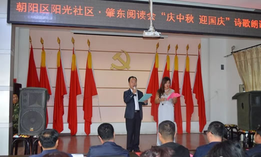 傳承文化慶中秋。9月19日南城社區(qū)與志愿者、21日陽光社區(qū)與肇東閱讀會分別開展了詩歌朗誦活動。居民親自編寫的《獻給南城社區(qū)的贊歌》表達了居民與社區(qū)的深切情誼,社區(qū)干部朗誦的《共圓社區(qū)夢》展現(xiàn)了社區(qū)干部的風采。陽光社區(qū)的《月光下的祖國》、《與祖國同行,鑄華夏輝煌》歌頌了祖國日新月異和祝福了祖國更加繁榮富強。表演者們熱情的演出,觀眾們掌聲不斷,兩場節(jié)目緊湊有序,給居民呈上了一道文化大餐,得到了居民的一致好評。