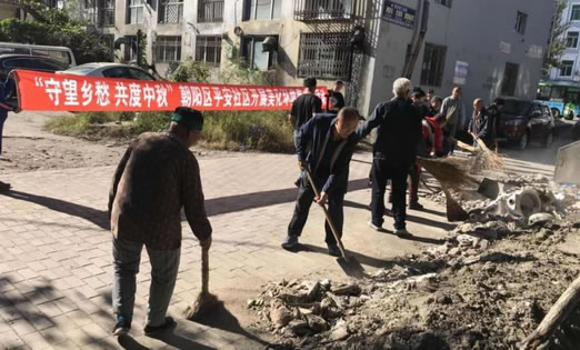美化環(huán)境慶中秋。朝陽區(qū)各社區(qū)居委會還開展了環(huán)境衛(wèi)生整治活動。社區(qū)干部和志愿者帶著水桶鏟子,清理網(wǎng)格內(nèi)小廣告,揮動著掃帚鐵鍬清掃居民活動廣場,大家不怕苦,不怕臟,干的熱火朝天,讓轄區(qū)居民過上一個干干凈凈的中秋佳節(jié)。