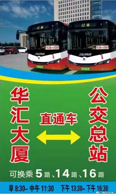 公交總站與華匯大廈(行政審批服務(wù)中心)線路開(kāi)通了,可乘12路公交互達(dá)