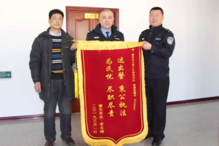 2019年3月1日,肇東市民李云峰來(lái)到市交警大隊(duì),將一面寫(xiě)有“速出警秉公執(zhí)法,為民憂盡職盡責(zé)”的錦旗送給了黃慧斌和劉偉剛兩位警官,感謝他們不辭辛苦連續(xù)工作,還原事實(shí)真相,做出公正裁決,維護(hù)了法律的公平正義。