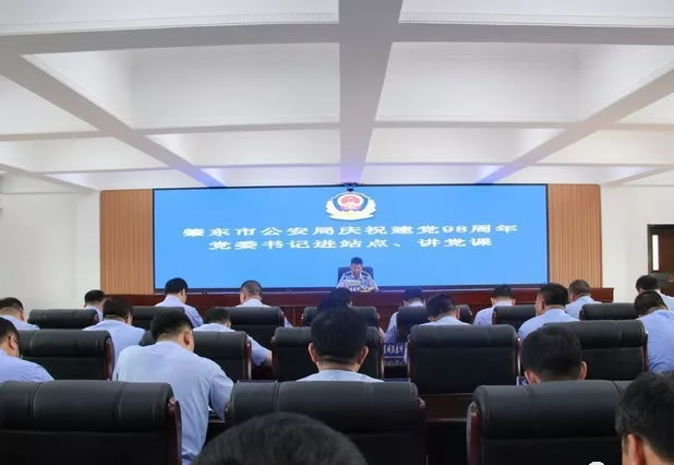 為紀念黨的98周年華誕,進一步增強黨組織的凝聚力和戰(zhàn)斗力,激勵基層黨組織和廣大黨員民警繼承和發(fā)揚黨的光榮傳統(tǒng),增強黨性意識,凝聚智慧力量,充分發(fā)揮黨員民警在公安事業(yè)中的先鋒模范作用,7月1日,肇東市公安局舉辦慶祝建黨98周年黨委書記進站點、講黨課活動。局長張國輝為全局黨員民警作了《不忘初心聽黨話,牢記使命跟黨走,全力為肇東全面振興全方位振興創(chuàng)造安全穩(wěn)定環(huán)境》專題黨課輔導。局黨政班子成員、基層科所隊長聆聽講座。